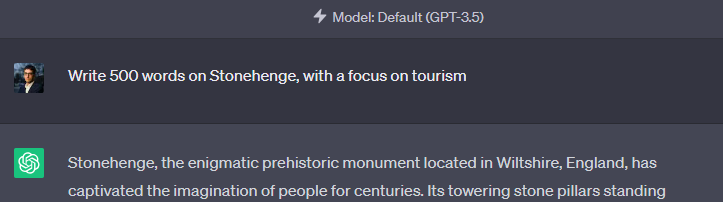 Freely available detectors are pretty bad at detecting GPT-4, so let’s use GPT-3.5. I asked it to generate 500 words on Stonehenge.